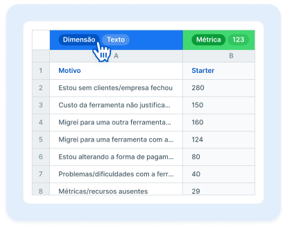 Crie métricas personalizadas, gráficos, tabelas e indicadores a partir dos dados da sua planilha.