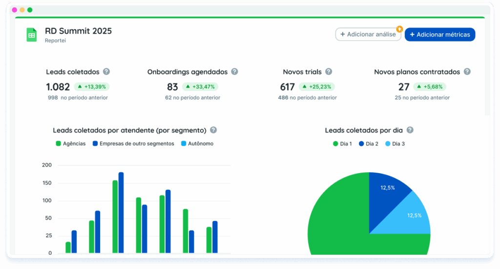 A IA do Reportei criará métricas com base nos dados importados, mas você também poderá criar suas próprias.