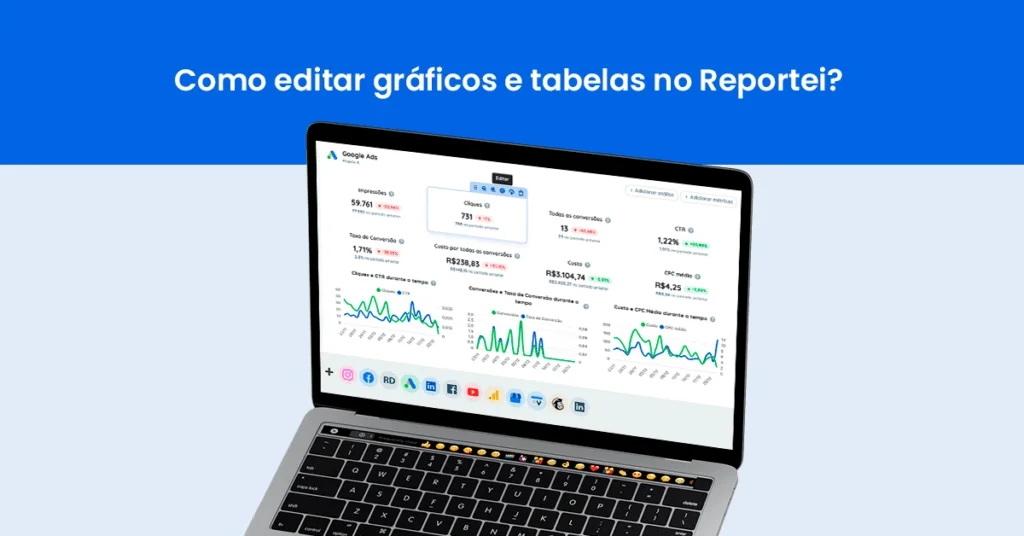 Saiba como criar relatórios personalizados editando seus gráficos e tabelas no Reportei.