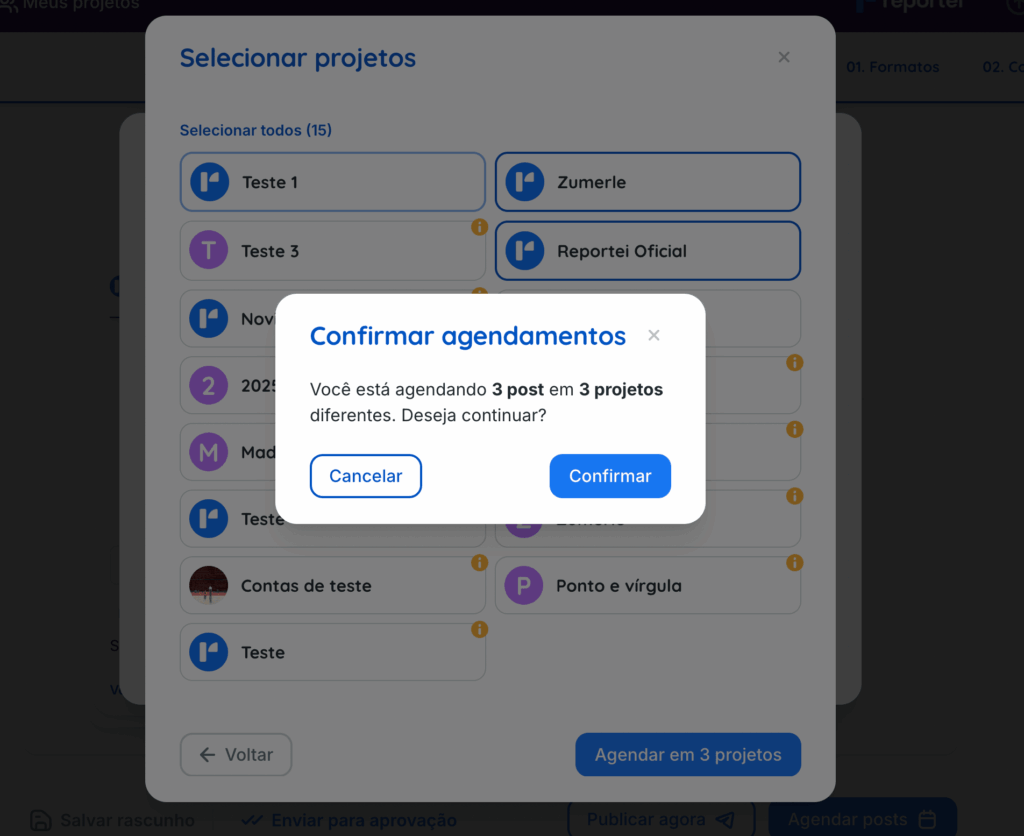 Outro recurso que temos no Flux é a opção de agendamento em múltiplos projetos.