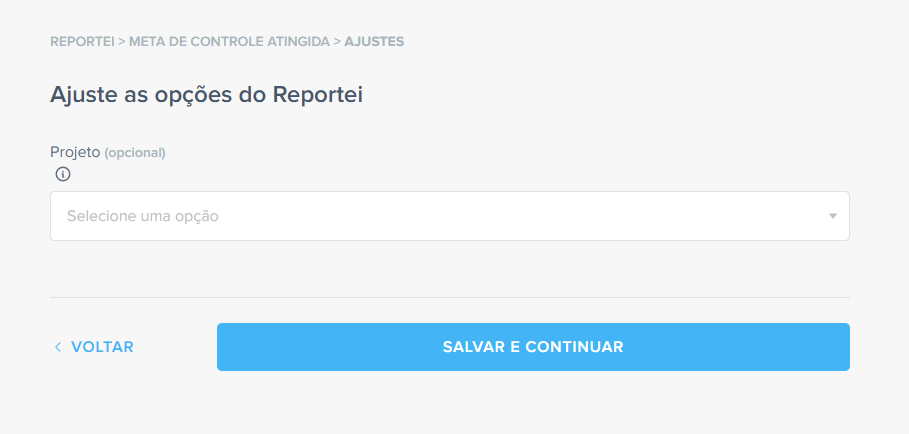 Em nosso exemplo, usaremos “Meta de controle atingida”.