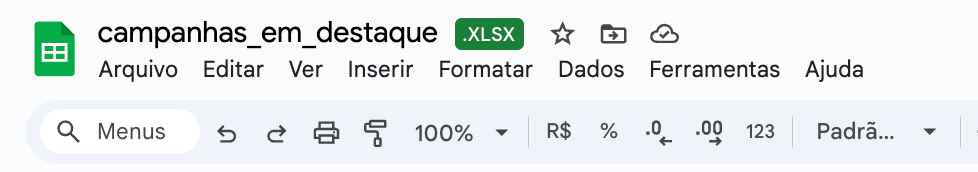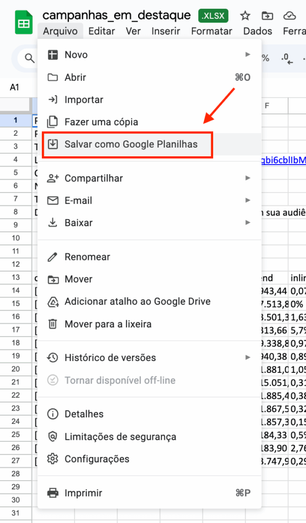 Para integrar uma planilha ao Reportei, ela precisa estar salva como Planilha Google. O formato .XLSX não é compatível.