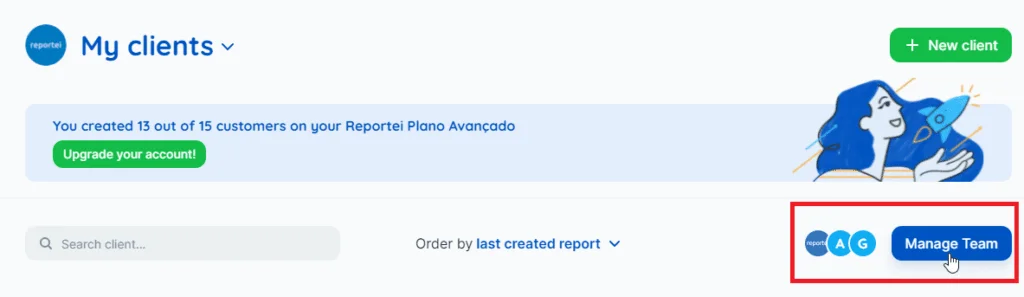 In addition to having the main account, you (as a freelancer, agency or manager) can add other professionals so that they can collaborate with the management of one or several clients/projects in Reportei.