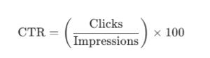 Its calculation is simple: divide the number of clicks by the number of impressions and multiply the result by 100, as shown in the formula below.