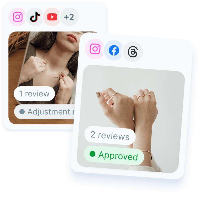 Para agências, empresas, social medias e freelancers que precisam agendar posts para redes como Instagram, Facebook, TikTok, Threads e LinkedIn, organizar tarefas e acelerar aprovações de conteúdo. Tudo isso com um calendário intuitivo e fluxos de trabalho visuais.