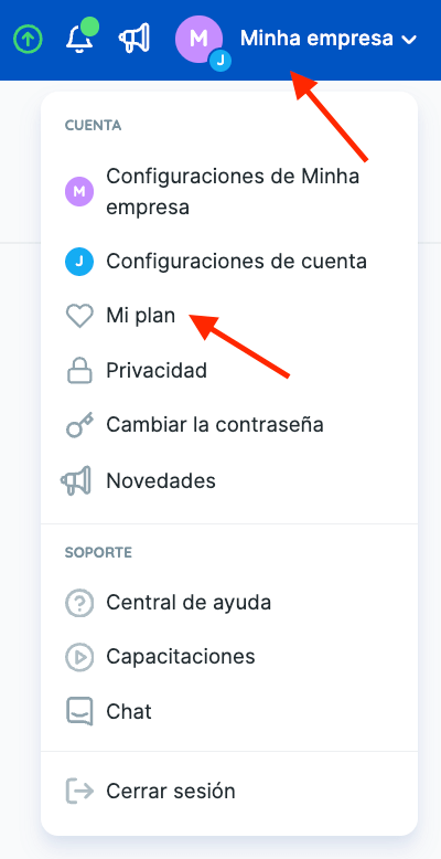 Para cambiar los datos de la tarjeta, basta ir al menú de Configuraciones en la esquina superior derecha de la pantalla y hacer clic en la opción de Mi Plan.