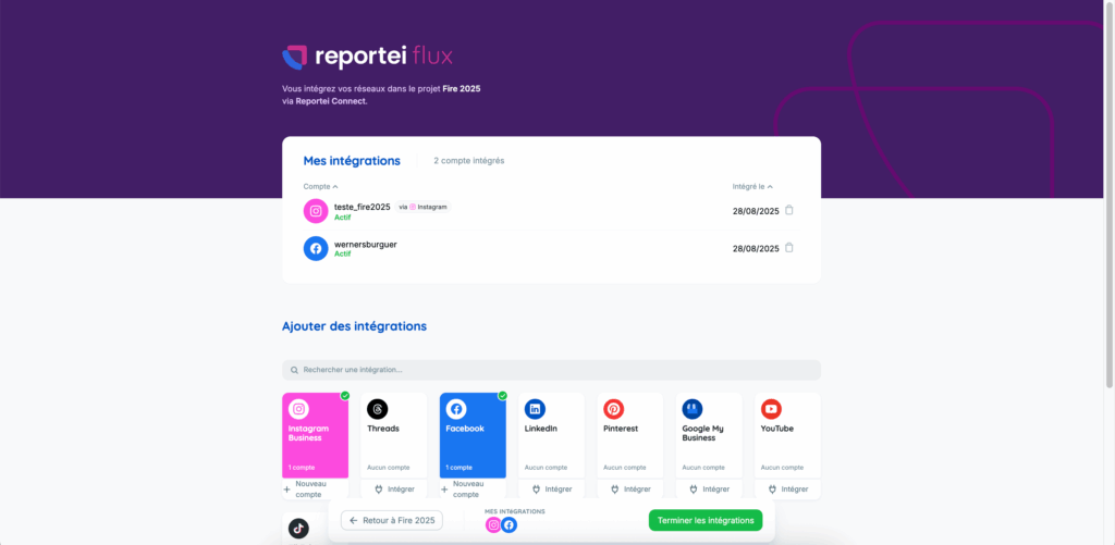 Astuce rapide : si vous utilisez déjà Reportei pour les rapports, maintenir la même structure de projets/clients facilite l’organisation des contenus dans le Flux.