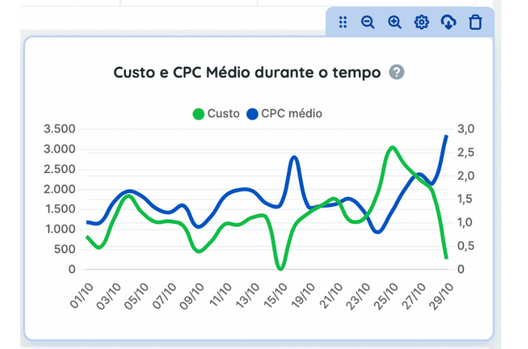 Les tableaux et graphiques sont généralement essentiels pour comprendre les tendances et comparaisons, mais il est parfois nécessaire de les adapter à la logique de chaque stratégie. Ainsi, dans Reportei, l’édition de ces éléments est très intuitive et flexible.