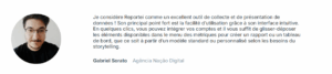 Ceci étant dit, rien de tel que de connaître l’avis de ceux qui utilisent déjà Reportei. De nombreux professionnels et agences soulignent non seulement la facilité de création et d’édition de tableaux de bord, mais aussi l’agilité pour obtenir des insights précieux. Voyez les exemples suivants.